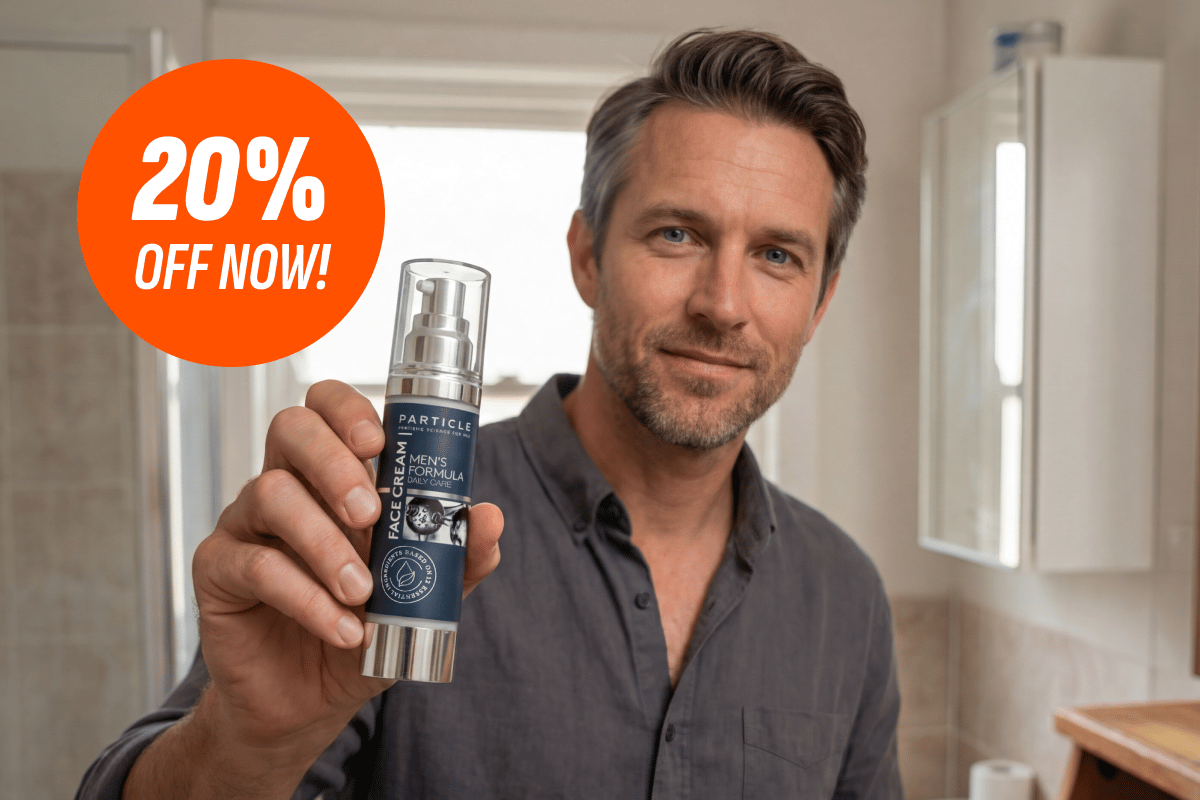 Particle Face Cream is a 6-in-1 formula engineered specifically for men's skin. It reduces eye bags, dark spots, and wrinkles, restores firmness, hydrates deeply, and revives dull tone. Multiple premium anti-aging ingredients, clinically researched, built into one product that actually fits your routine.